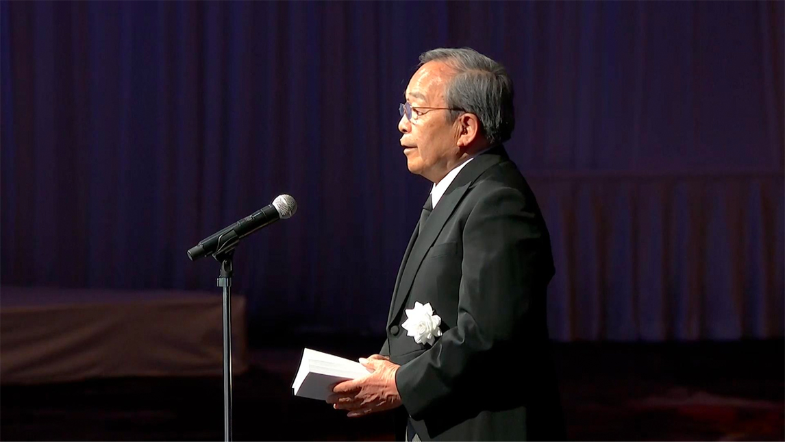 内山田竹志董事长宣读了悼词,追忆了自己在研发初代PRIUS的过程中得到丰田章一郎名誉会长的指导一事。