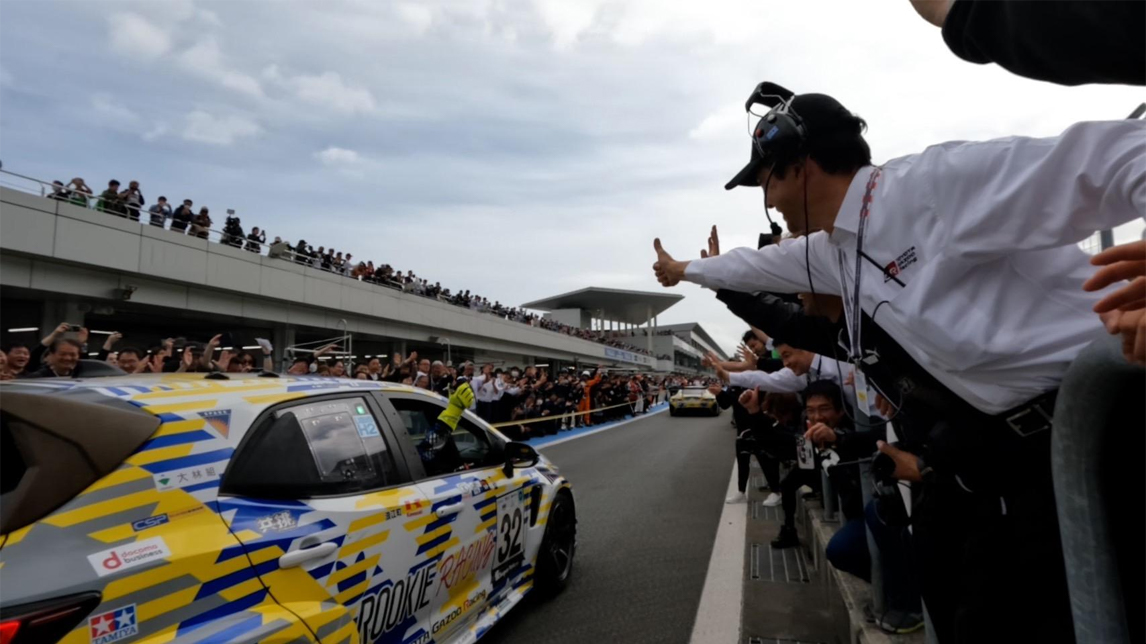 完成了严苛比赛的COROLLA和车手Morizo迎来了雷鸣般的掌声。