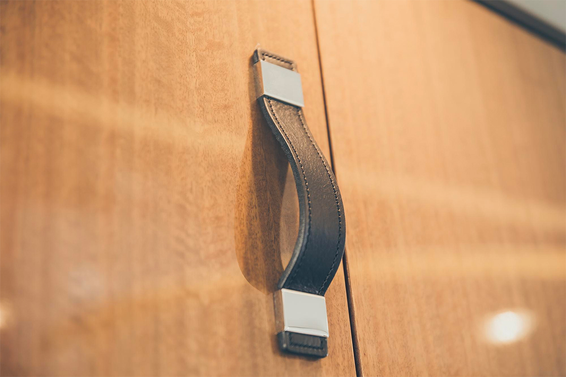 为了打造非日常的体验,不仅仅是色泽,“原材料的对比”也绝不松懈,在手感的比较上精益求精。例如,项目组选择了皮革为原材料制作门把手。