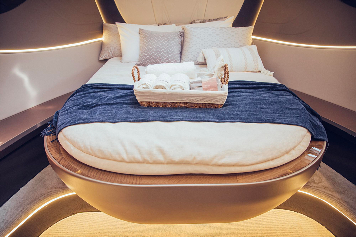上图为雷克萨斯豪华游艇“LY650”的卧室舱房。标配售价约4.5亿日元*。