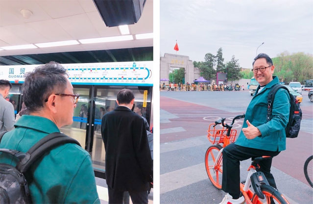 搭乘地铁和自行车前往此行的目的地——清华大学。