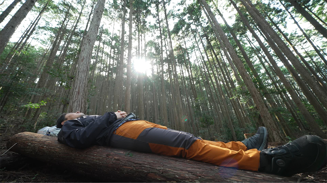 富川在熊野古道享受森林浴。尽管他看起来十分放松,但实际上,他正在参与某个实验。当人们在自然环境放松身心时,皮肤上竟然会发生某种变化?