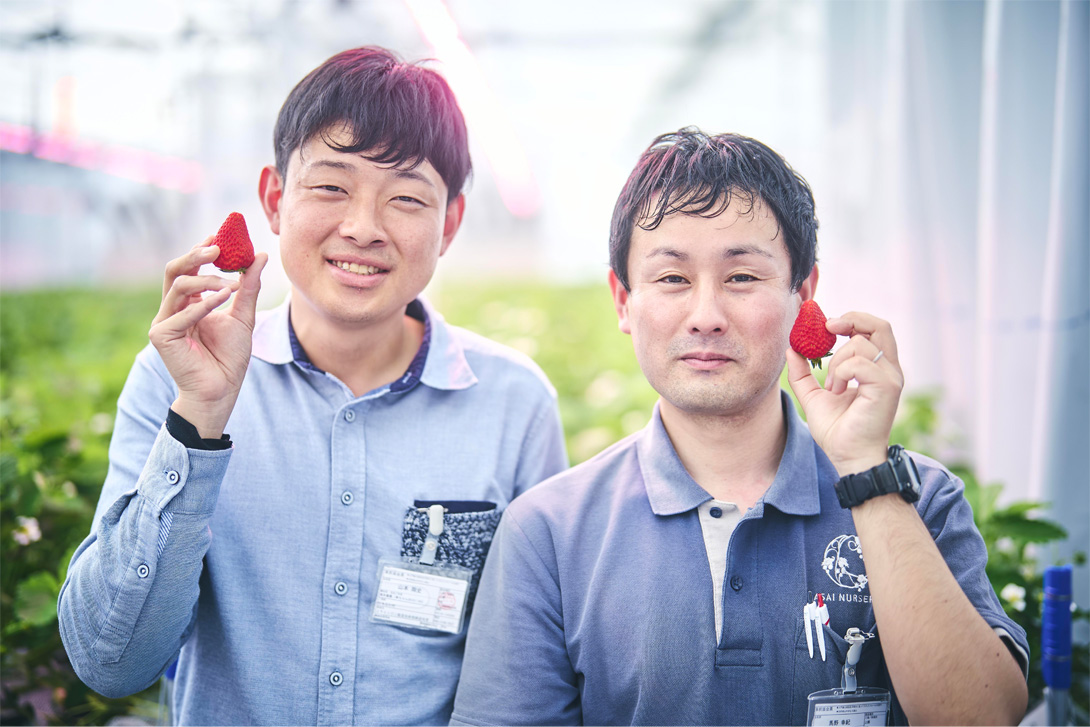 作为顾问提供协助的农户。“小幸的草莓温室”山本翔史(左)、“浅井农场”马野幸纪(右)。
