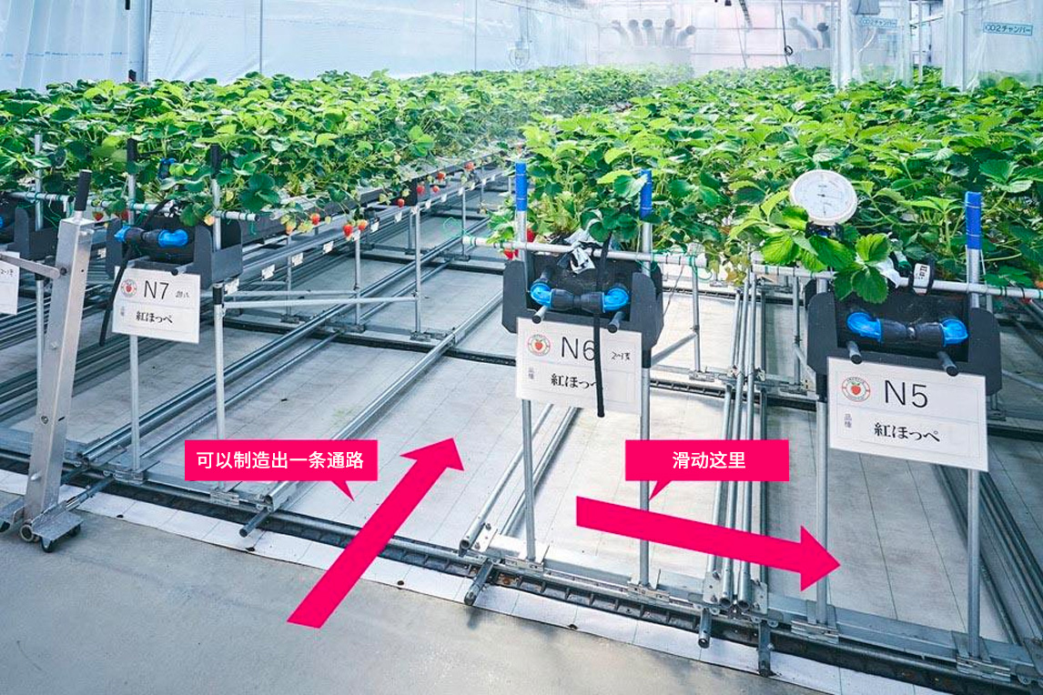 但如上图所示,通过“可滑动式垄”,大幅减少固定通路数量,如此一来,耕地面积便增加了。