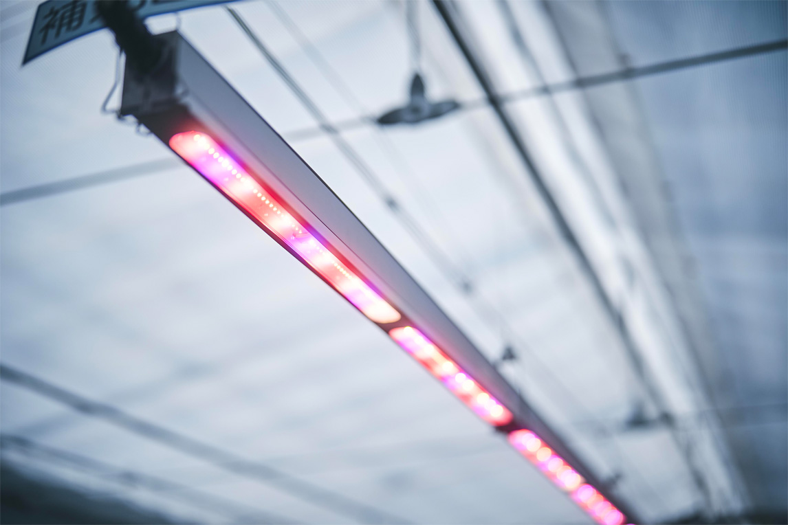 LED之所以看起来是粉色的,是因为“去除了绿光”。那是因为,对植物的成长很重要的光合作用,不需要绿光。同时,我们在尽量避免使用农药上也下了一番功夫,使用紫外线灯以达到杀菌效果。