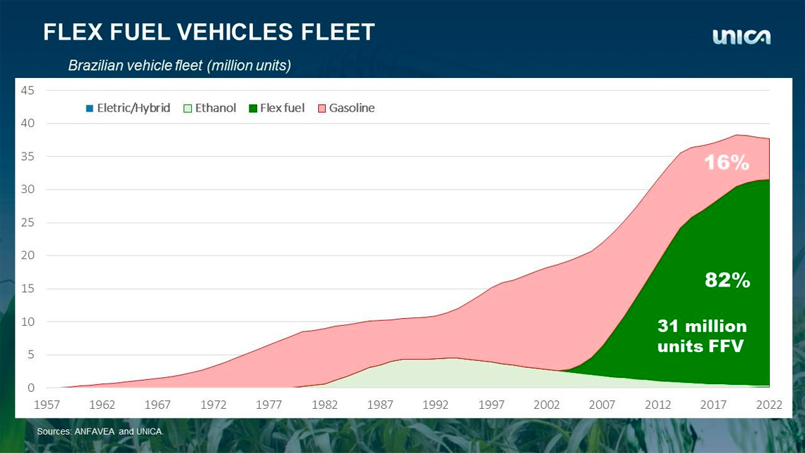 据巴西甘蔗产业协会(UNICA)的调查显示,自2003年弹性燃料汽车问世以来,到2022年为止,运货区段的汽油使用量减少了41.7%。