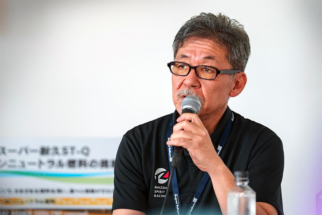 这次我们参赛的目的是,在比赛的极限状态下进行实证试验和测试用来代替汽油的碳中和燃料。这是马自达迈出的第一步。