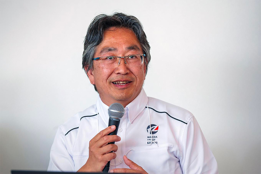 在介绍Roadster参赛的圆桌会议上,担任马自达Executive Fellow兼品牌设计人的MAZDA SPRIT RACING前田育男代表、碳中和资源循环战略部的木下浩志部长、动力总成研发本部长松江浩太,三人分别阐述了自己的想法。