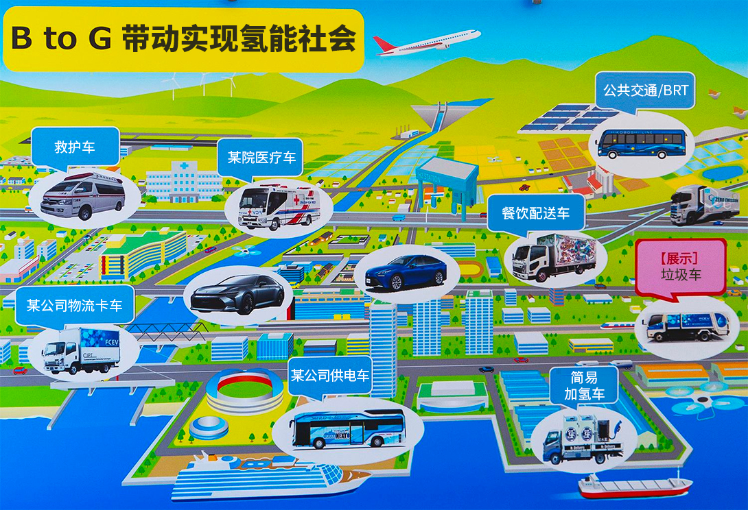 我们正在考虑将这些乘用车和商用车组合在一起,构建全方位的“B to G”的事业,即企业(Business)到政府(Government)的形式,在一个城市或一个县全面打造氢能社会。这一计划预计从福冈县、福冈市开始。