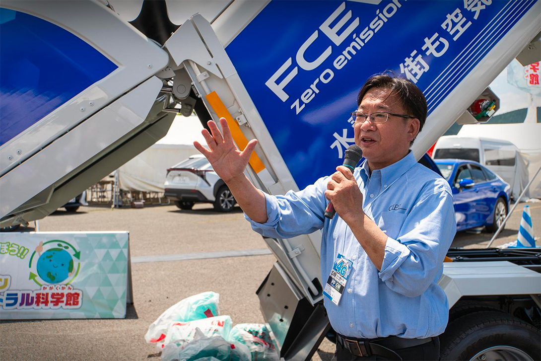 在活动广场上,FCEV垃圾清运车首次亮相。在面向媒体举办的圆桌会议上,来自负责商用车的CV Company的太田博文首席工程师(CE)对该车辆的特征进行了说明。
