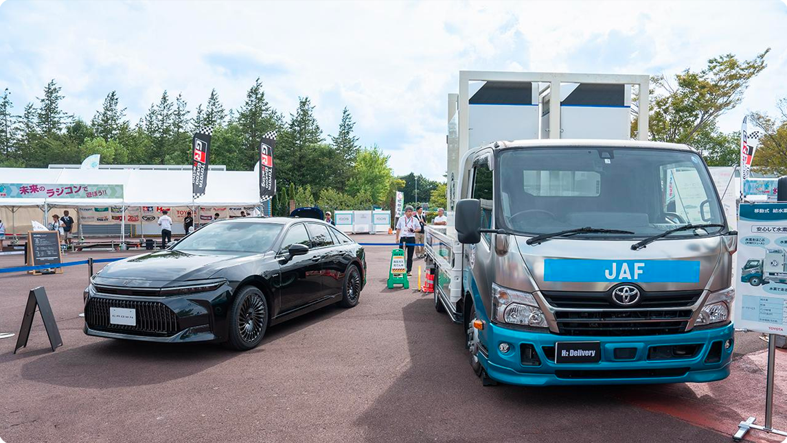 继7月在AUTOPOLIS推出FCEV垃圾车之后,JAF的道路服务加氢车首次在MOBILITY RESORT MOTEGI的活动广场亮相。
