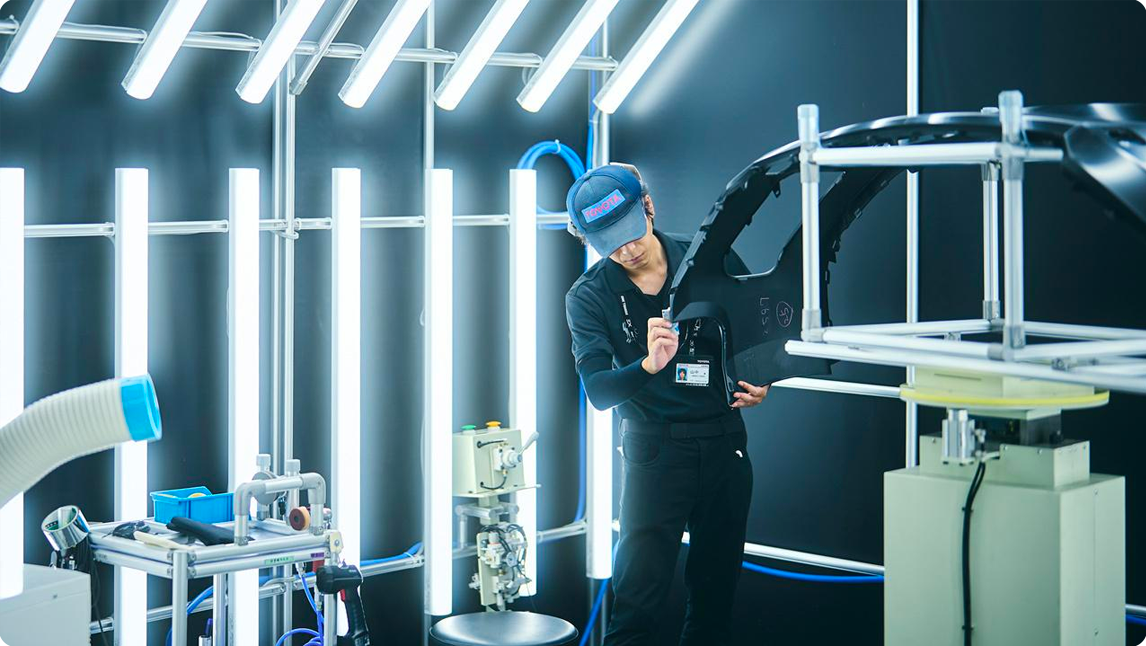 负责PL线研磨工序的是山中翼,来自生产全新世极的田原工厂(爱知县田原市)涂装成形部,是一位年轻的树脂研磨匠人。