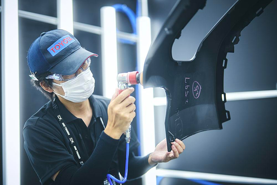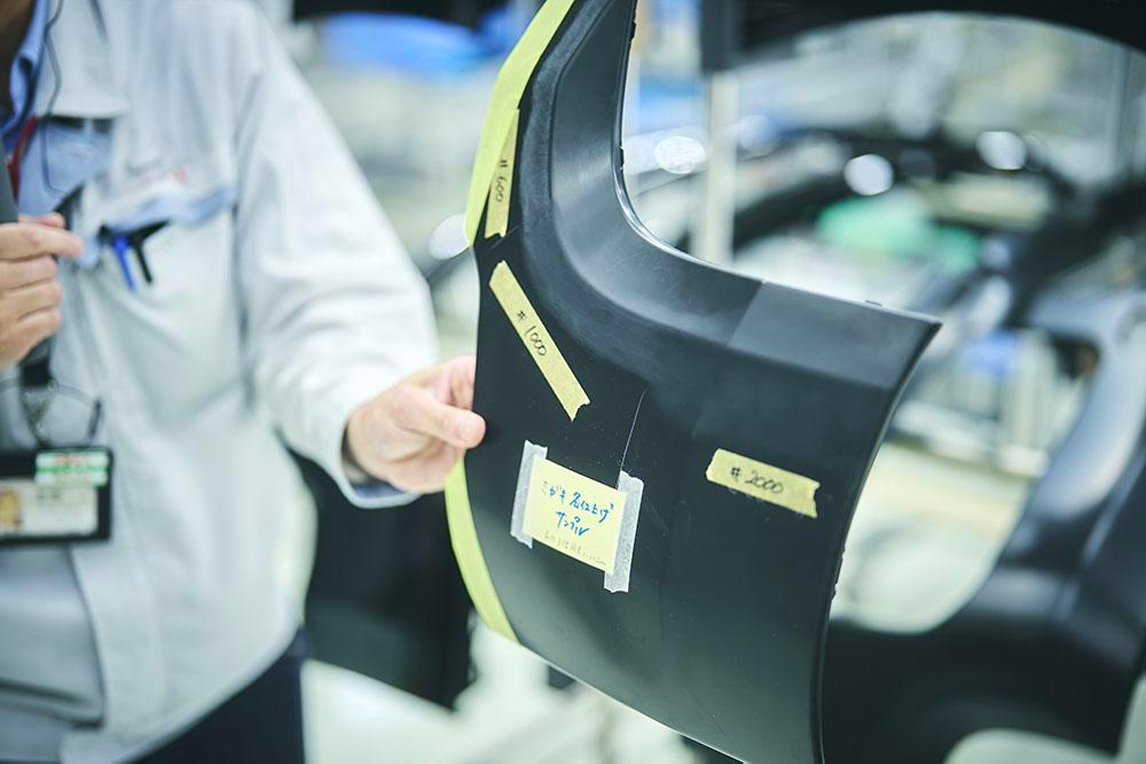 我曾经做过手持喷枪喷涂,也算是有过参与手工涂装树脂零件的工序的时期,但近年来这一道工序几乎都是自动化完成,所以我也就长期专注于活用“研磨”的技能,献身于汽车制造。