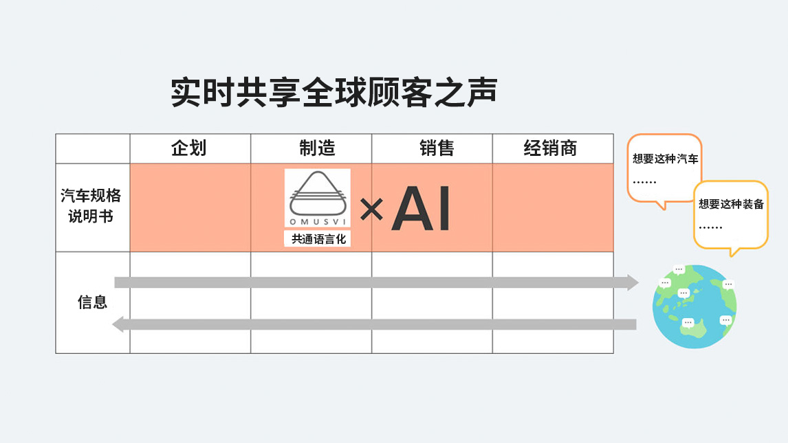 OMUSVI和AI合并的工具的构想。实时共享不同地区的顾客之声