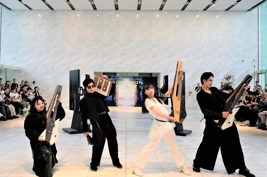 有人提议,可以用 “FCEV用氢储存罐的树脂零件”这一独特事物以及“木材的边角料、树皮部分”制作乐器。于是,一把世界上独一无二的吉他诞生了。