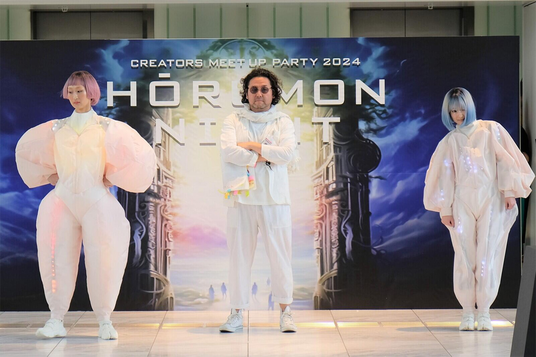 这次的时装秀名字叫“HŌRUMON NIGHT”,因为废料是一种被丢弃的东西,就像肉类中的激素一样。我们希望它能成为一个积极推动可持续发展的活动,大家都能在这里畅所欲言。
