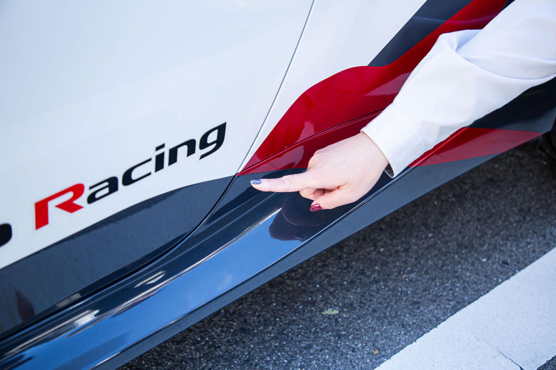 此外,车身和保险杠的涂装工作是分开进行的,最后才会进行组合,因此各工序之间需要紧密协作,以确保图案能够精确对齐。这是需要进行精确到毫米级别的调整工作。
