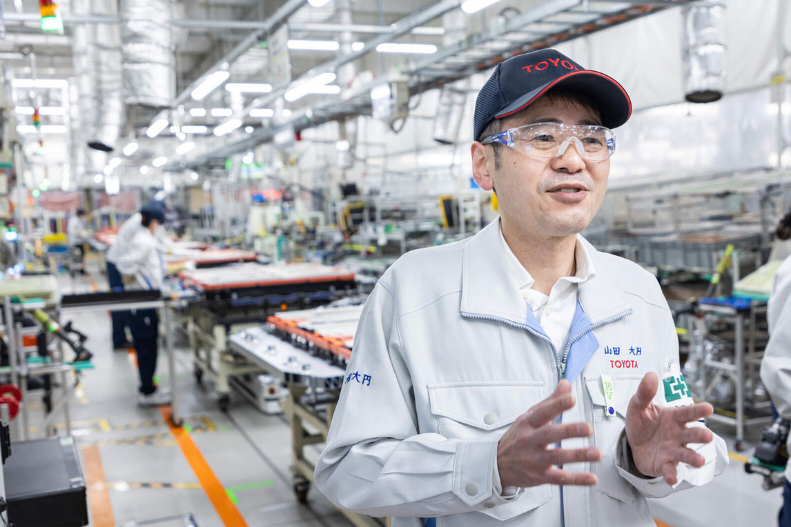 在这样的背景下,机械部于2022年建立了丰田首条纯电动(BEV)电池包生产线。负责该项目的山田大圆课长向我们介绍了制造现场坚持不断改善的具体情况。