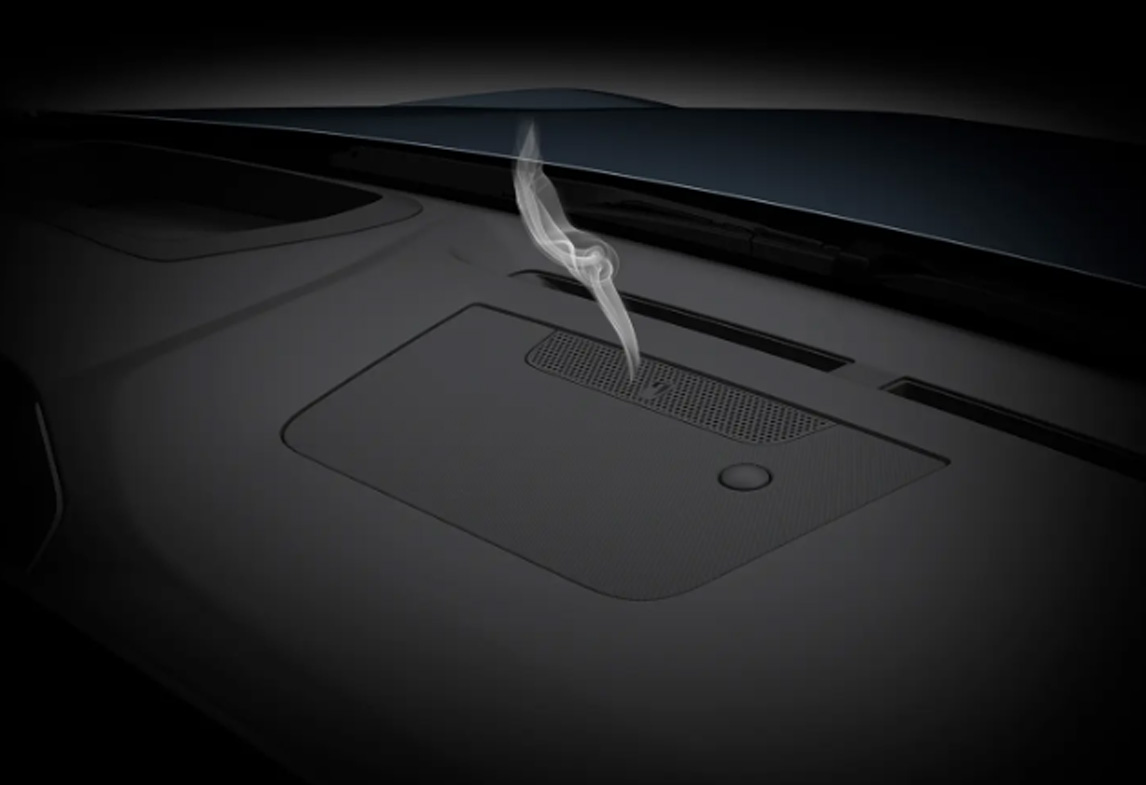 在车辆前部的手套箱内配备了香气发生器,可从5种香型中选择,能同时搭载3种您喜爱的香氛胶囊。香气是通过仪表盘内部的扬声器格栅散发出来的。