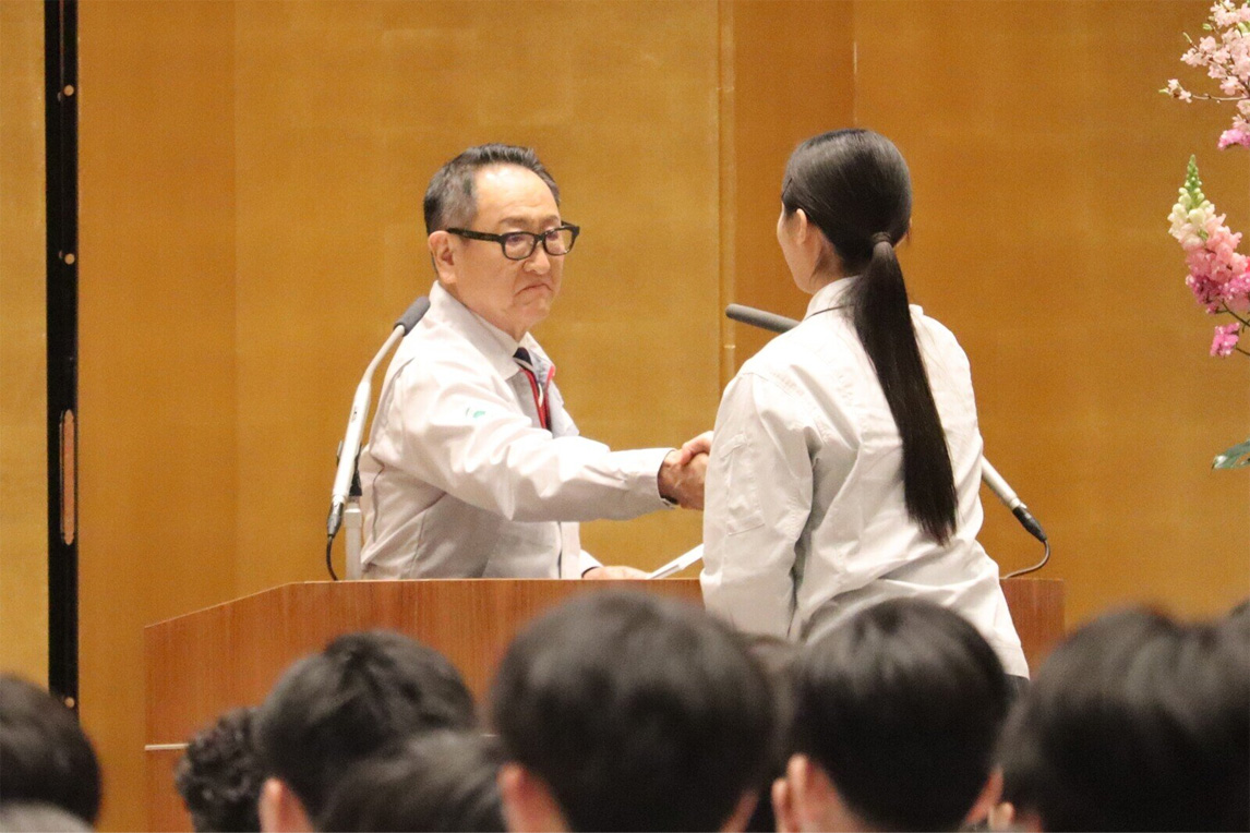丰田章男会长称赞毕业生们“培养了永不言弃的坚韧之心,以及关怀同伴、彼此扶持的温柔之心”,并鼓励他们“不仅要成为被道谢的人,更要成为能主动说出‘谢谢’的人”。