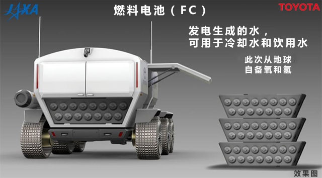 这次,从地球运送氢和氧作为燃料。通过更换储蓄罐,月球车可以一直行驶,发电排出的水也可以用于冷却水和饮用水。作为这次任务的能量来源,我认为燃料电池在各种意义上都是最合适的。