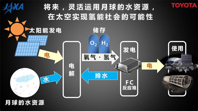 而且,如果通过这次项目,能在月球上发现水资源,将来能够灵活使用水资源的话,那么就可以在太空中稳定地储存并使用能源,用太阳能发的电和水进行电解,储存氧和氢,然后用它发电,再把排出的水循环使用。可以当做生活用水,或者用于电解。