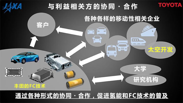 迄今为止研发出来的燃料电池技术,不仅可以作为丰田的商品推出,还可以用于各种各样的移动性用途和驱动单元,我想和更多的利益相关方一起推进合作。