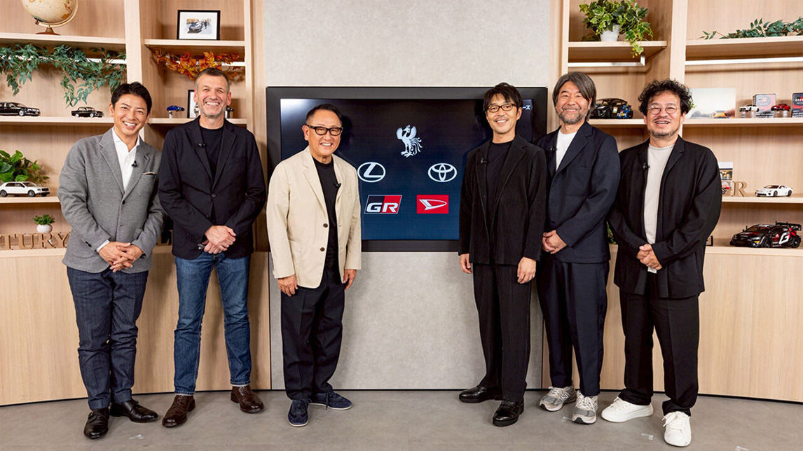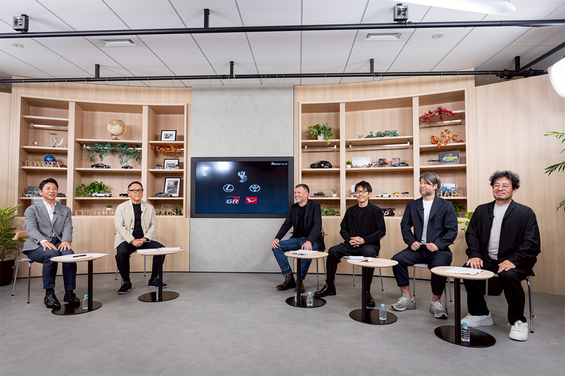出席直播节目的6位嘉宾包括(从左至右):《Toyota Times丰田时报》的富川悠太、丰田汽车会长丰田章男,以及负责世极品牌广告创意的首席品牌官(Chief Branding Officer简称CBO)西蒙·汉弗莱斯(Simon Humphries)、负责雷克萨斯和GR广告创意的野添刚士(SIX Inc.)、负责丰田广告创意的筱原诚(筱原诚事务所)、负责大发广告创意的小西利行(POOL Inc.)。