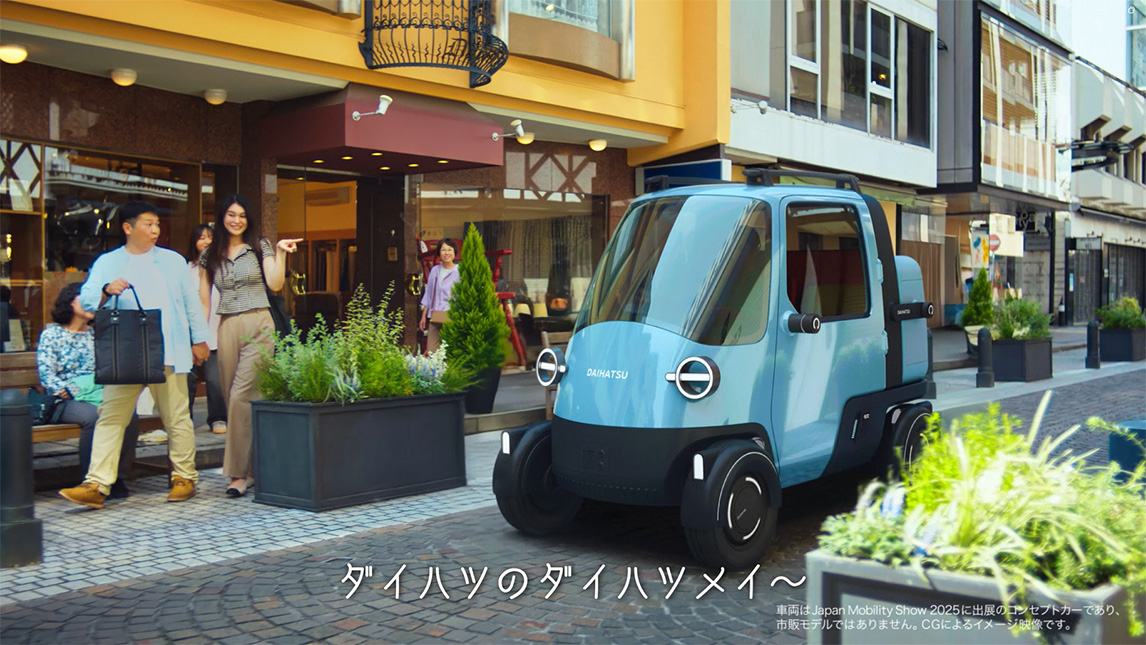 “发明”是自丰田佐吉发明自动织机以来,丰田集团传承至今的原点。该CM以让大发名声鹊起的Midget开场,以即将在JMS展出的Midget X压轴。
