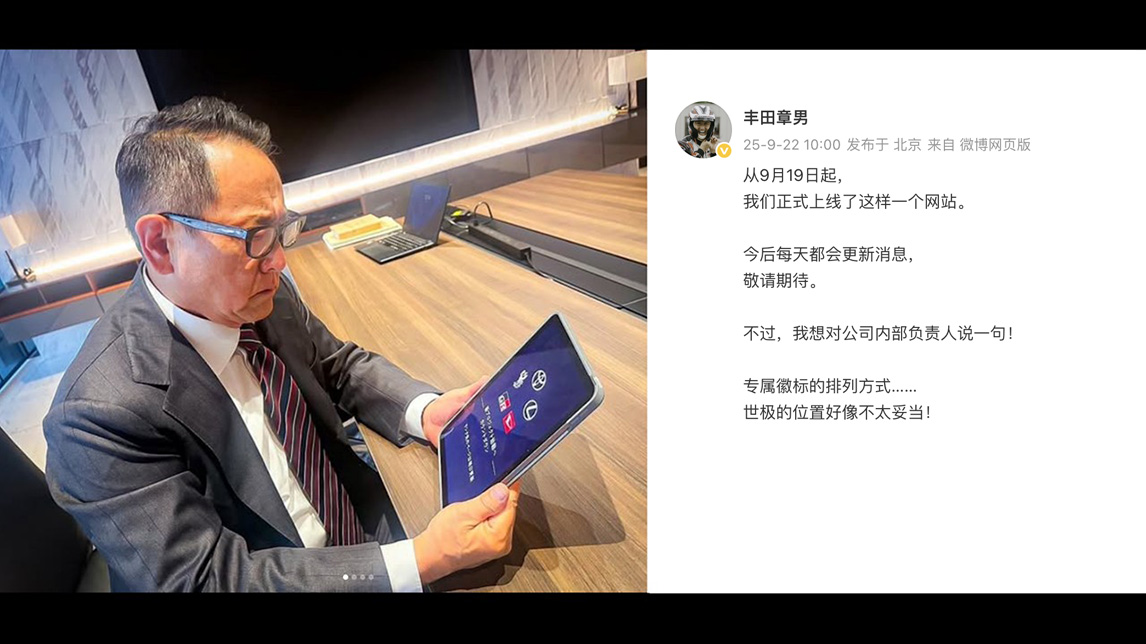 在五大品牌的定位上,最为上心的当属丰田章男会长。此前,他曾在社交平台上对丰田官方倒计时网站负责人提出“批评”,此事一度引发热议。