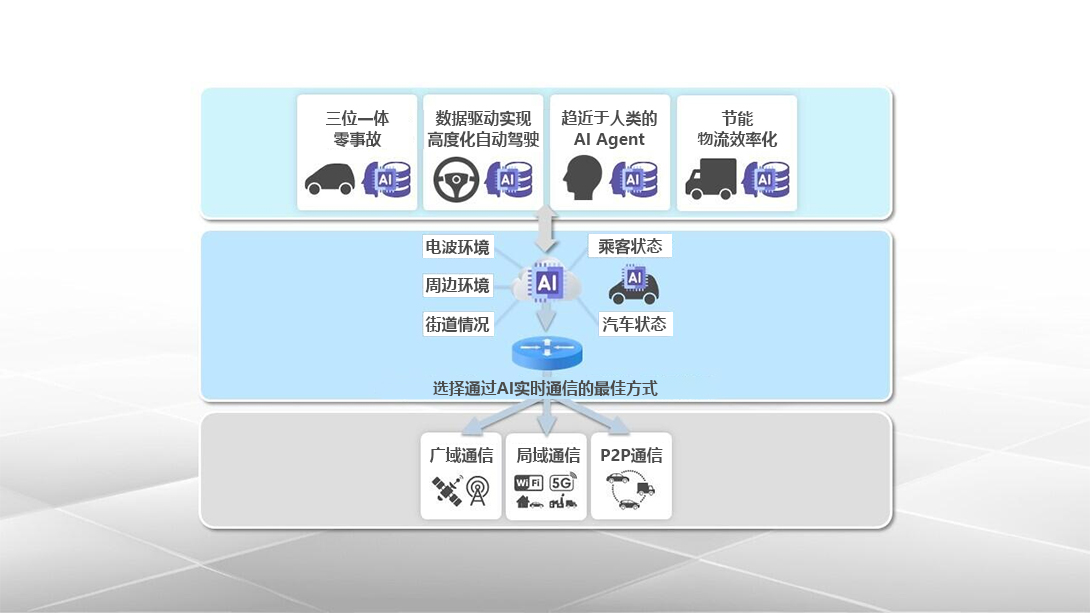 基于“分布式计算平台(数据中心)”和“智能通信平台”,构建“移动出行AI平台”的基础,该平台可从人、移动出行和基础设施提供的数据中学习和判断。