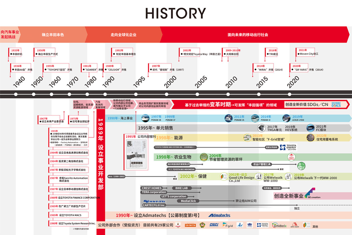 丰田于1989年设立专门负责事业研发的部门,同时建立了创业家制度。从这时起,丰田为了开拓“汽车以外的事业”,进行了各种尝试。