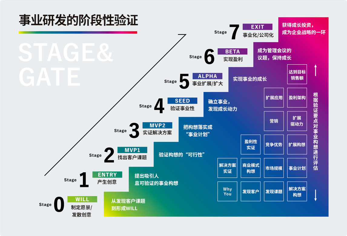 为了在提升事业成功率的同时抑制无效投资,BE creation设置了从产生创意直到最终实现事业化的7个具体阶段。