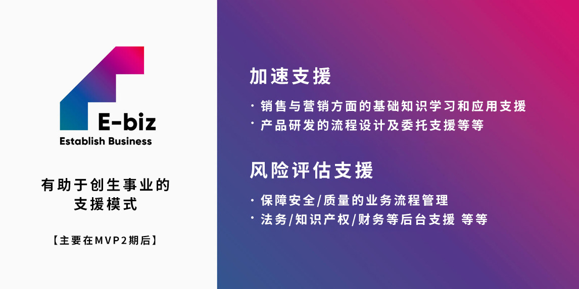 此外,他们还建立了E-biz模式,提供事业的加速发展所需要的帮助、风险管理方面的支援,为事业启动提供各种各样的助力。