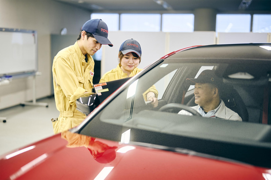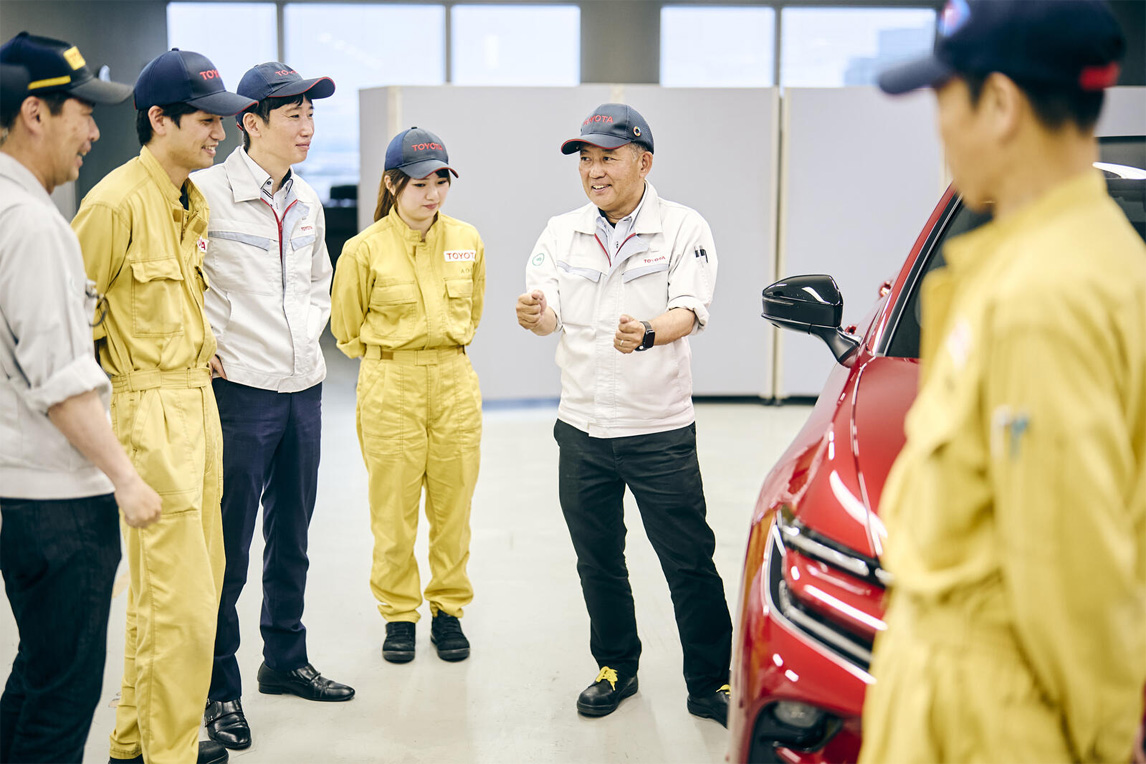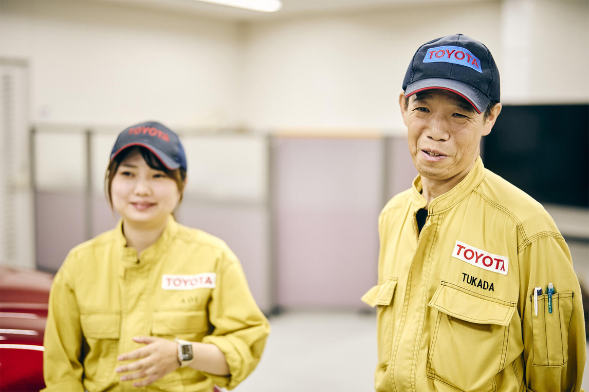 图右为负责车型的评价车手组长冢田正男。他自入社以来,就负责先行研发。2019年调到车辆技术研发部(DTG),担任CAMRY、RAV4、HARRIER、皇冠运动型等车型的负责人