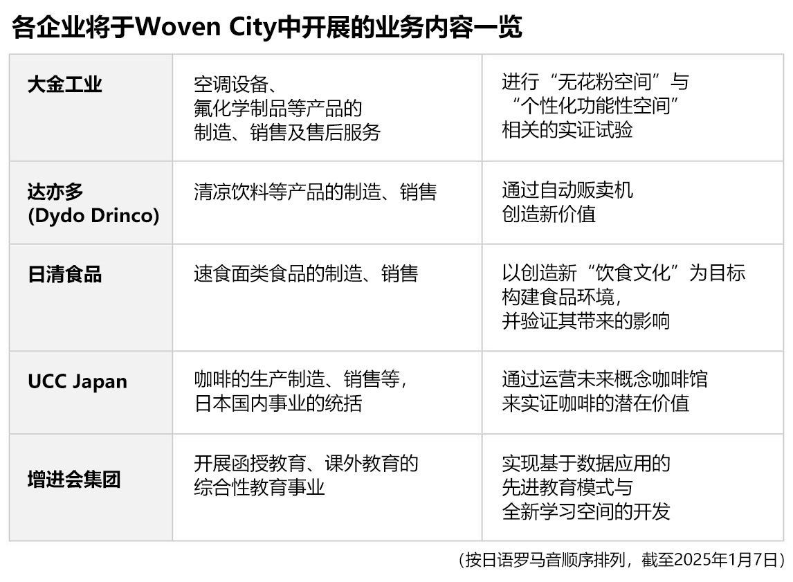而这次被公布的5家企业,便是第一批入住Woven City的“发明家”。