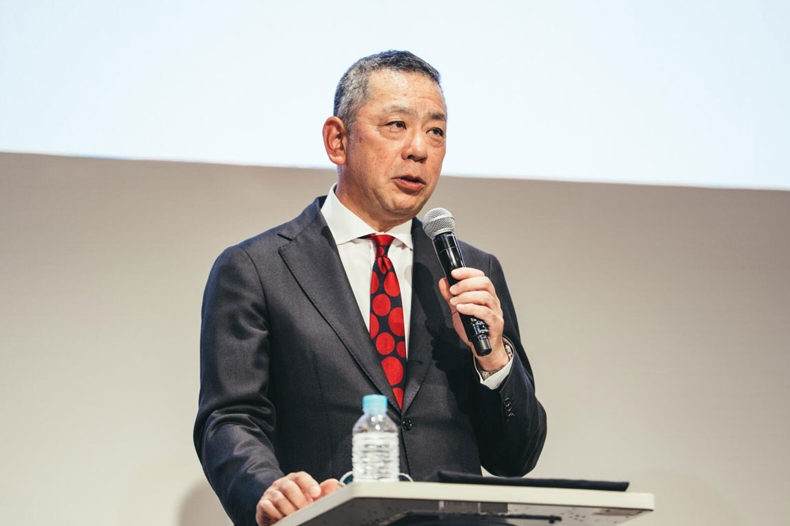 村松理事长上台发言。他提到,日本汽车产业的出口额约为22万亿日元,而内容产业约为5.8万亿日元,并表示:“决心通过进一步强化这一产业,使其成为日本的强大力量”。