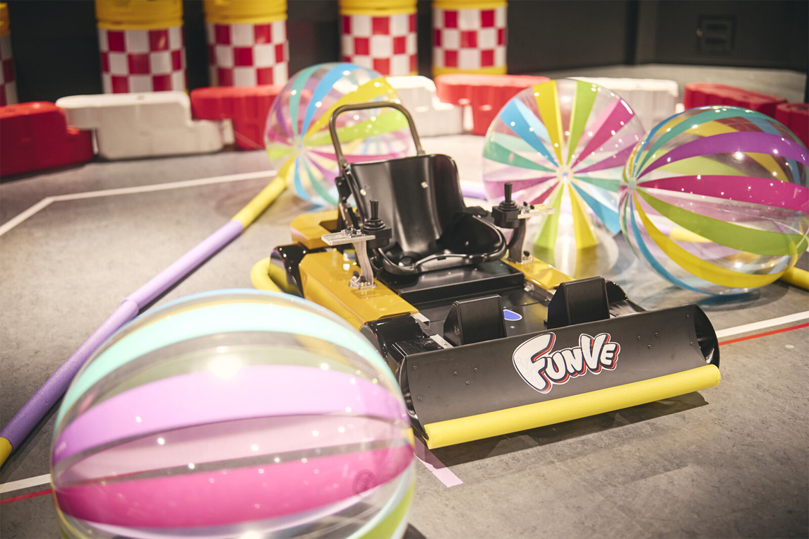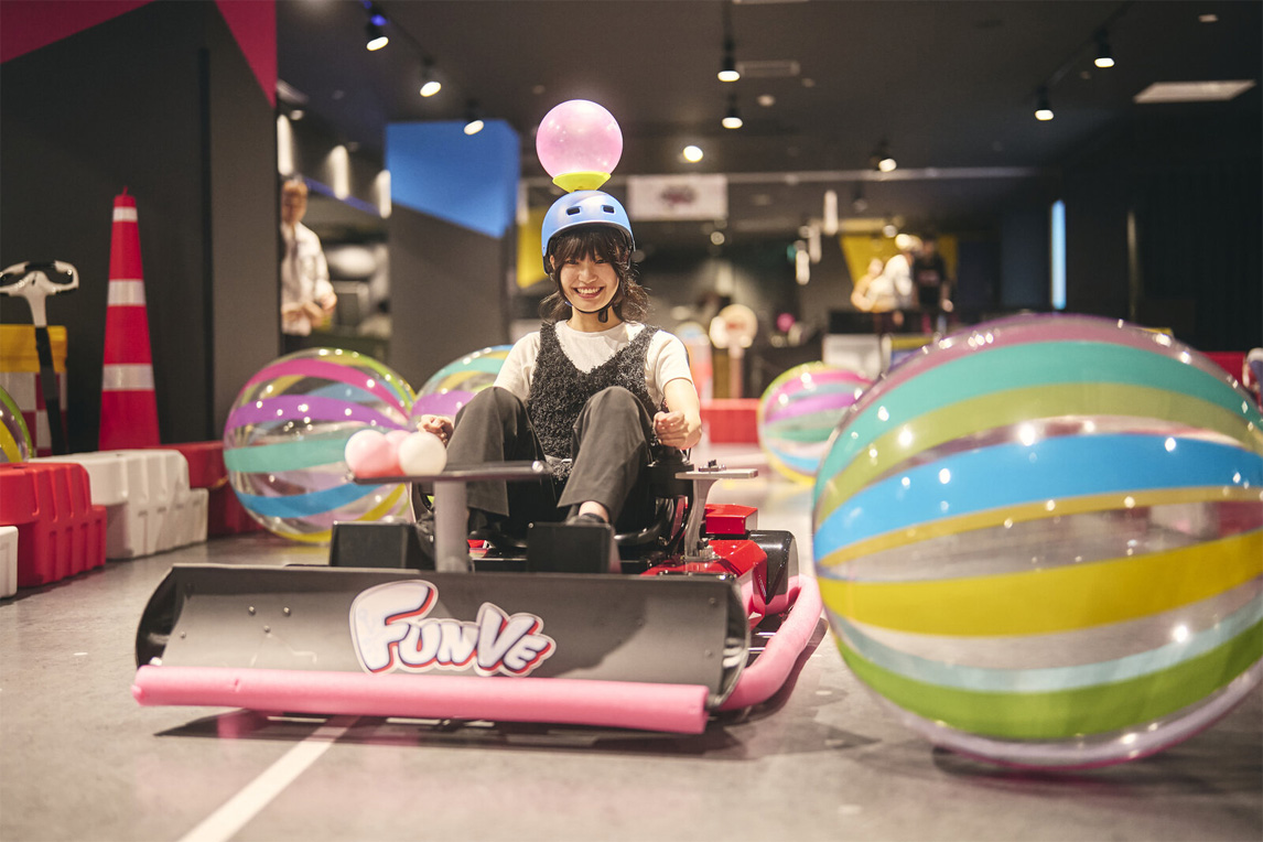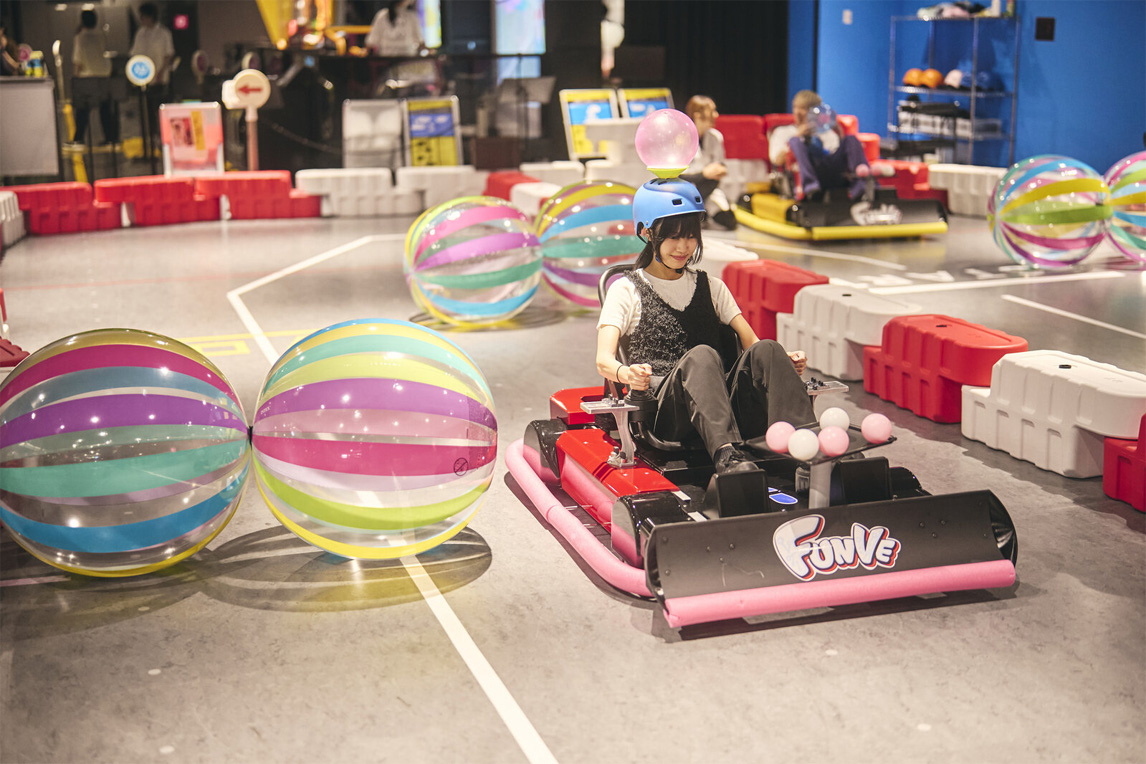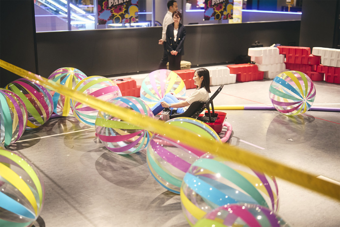 例如,在“BOMB! BOMB! 推推推”中,以前为了视觉效果放置了约1000个小彩色球,但这成了导致卡丁车损坏的“真凶”,给运营人员带来了负担。于是将球改为巨大的沙滩球,既改善了“视觉效果”,又让“游玩过程”变得更加有趣。