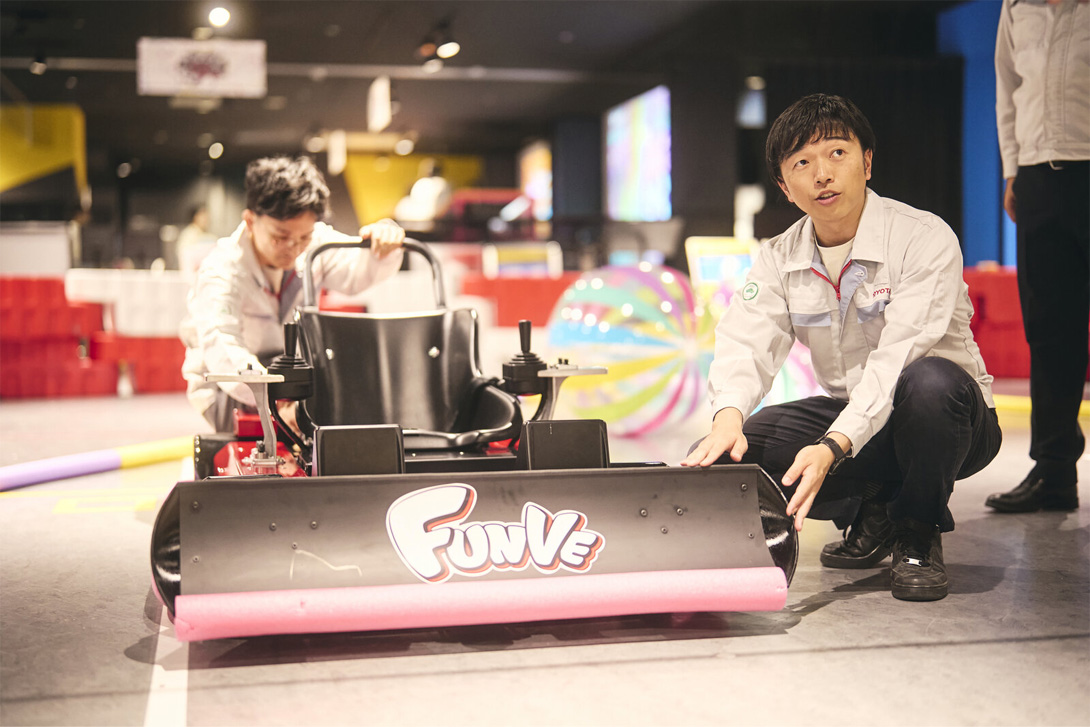 正是源于这样一个充满梦幻色彩的构想,丰田技术人员们倾注全力,研发出了一款乘坐式游乐设施,并将其命名为“FUNVE(取“乐趣”之FUN与“车辆”之Vehicle)”。