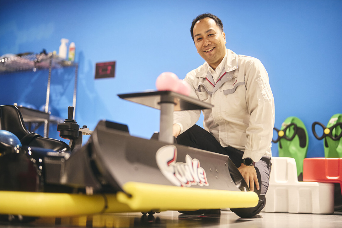 在进行汽车研发的车间一角,FUNVE的研发工作仍在继续,能感受到(众人的)目光,伴随着“哇呀”的欢呼声。借助这辆以笑容为原动力的FUNVE,也许有一天会迎来举办世界大赛的时刻。