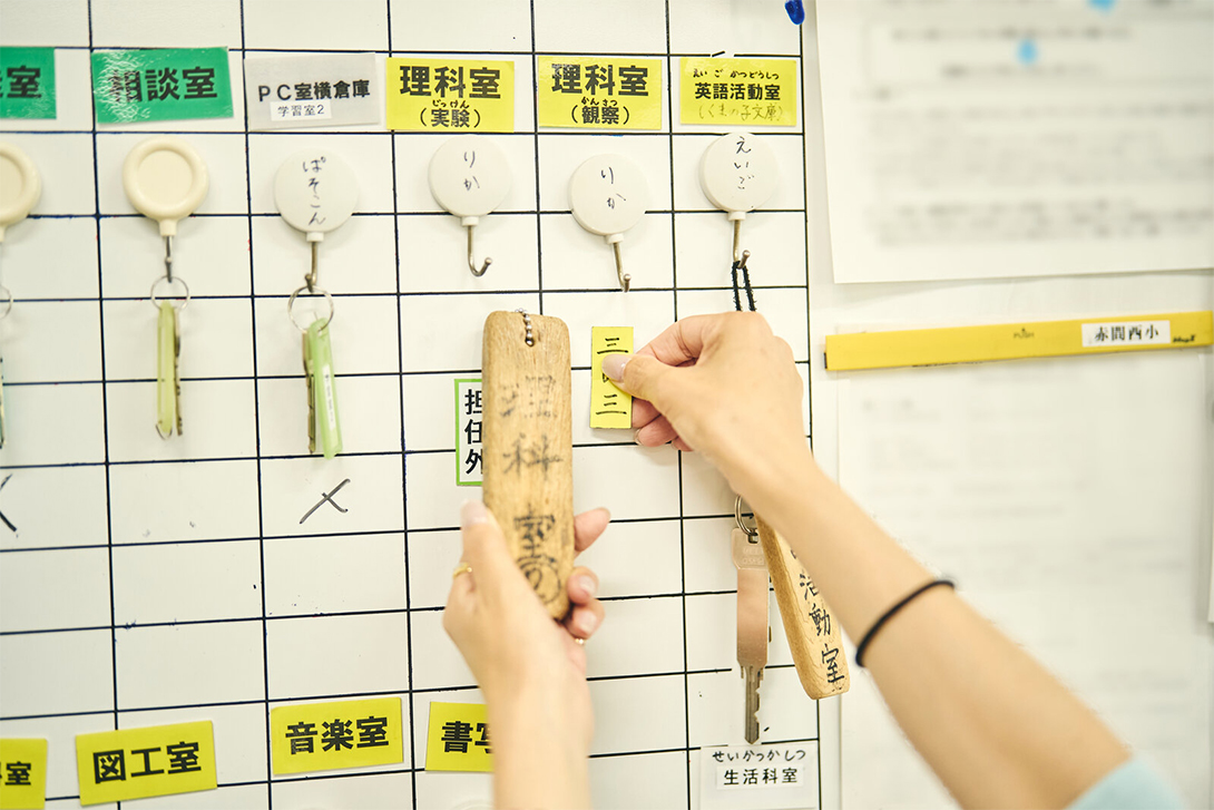 明确钥匙使用者这项改善,据说是教师们自主构思的。这正是改善理念逐步扎根的证明。教师们日常还会携带这样的备忘便签。