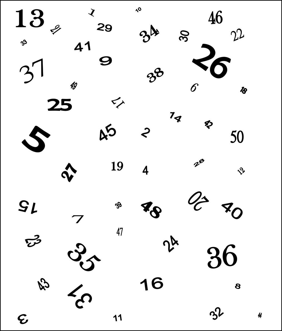 如果按顺序数完表中1至50的数字,您需要多少秒?