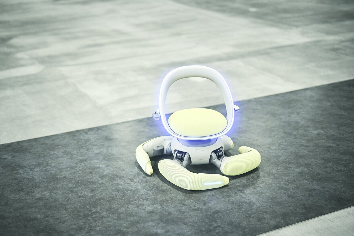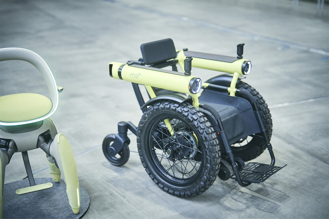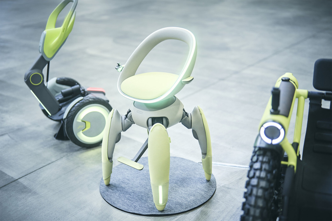 它与轮椅不同,采用四足行走结构而非轮胎,是一款能够无缝连接室内外移动、无需担心台阶的移动出行工具。值得一提的是,其设计还融入了从日式的“正坐”姿态中站起的特色动作。